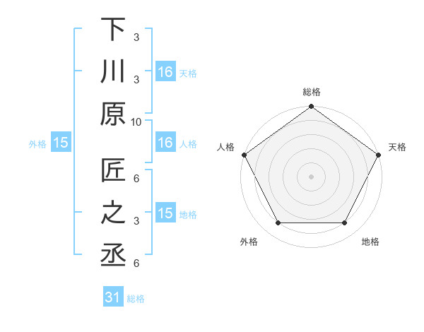 下川原 匠之丞さんを姓名の画数から五運を鑑定