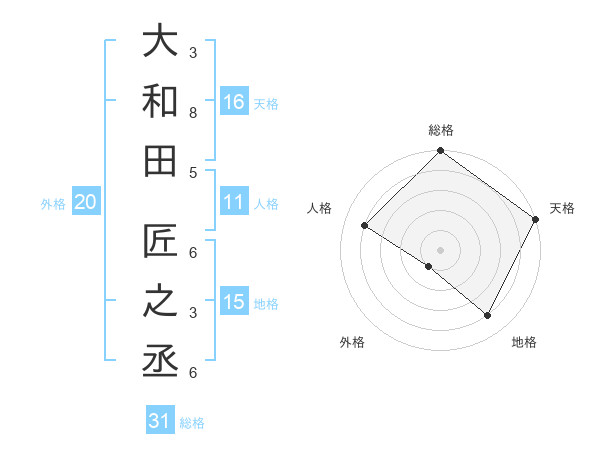 大和田 匠之丞さんを姓名の画数から五運を鑑定