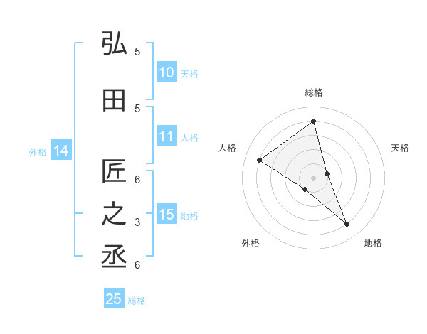 弘田 匠之丞さんを姓名の画数から五運を鑑定
