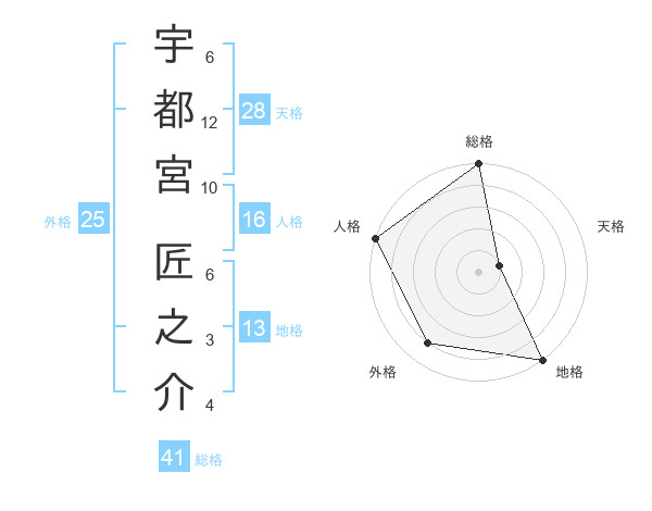 宇都宮 匠之介さんの総格は41画の5点!
