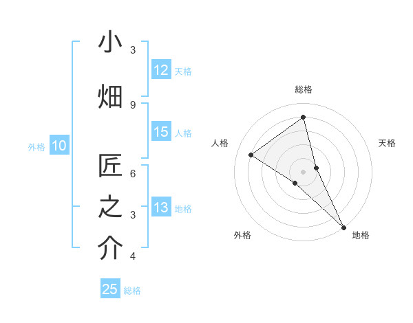 小畑 匠之介さんを姓名の画数から五運を鑑定