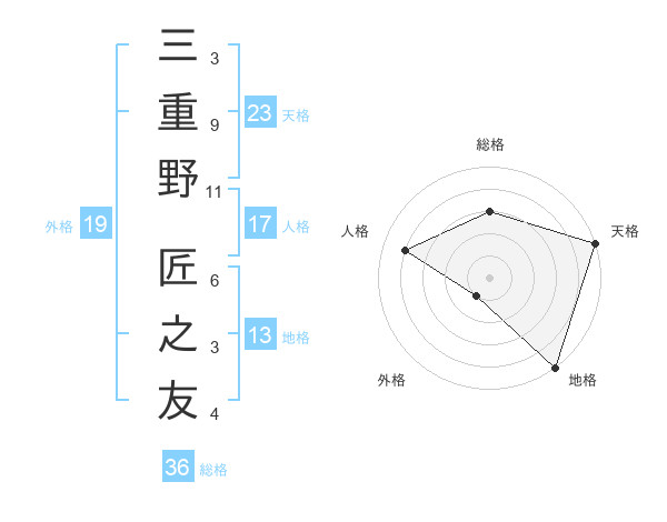三重野 匠之友さんを姓名の画数から五運を鑑定