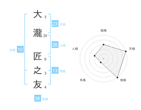 大瀧 匠之友さんの天格は23画の5点!