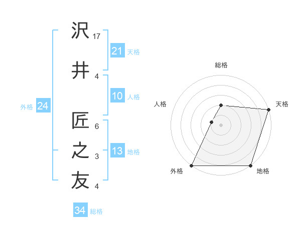 沢井 匠之友さんを姓名の画数から五運を鑑定