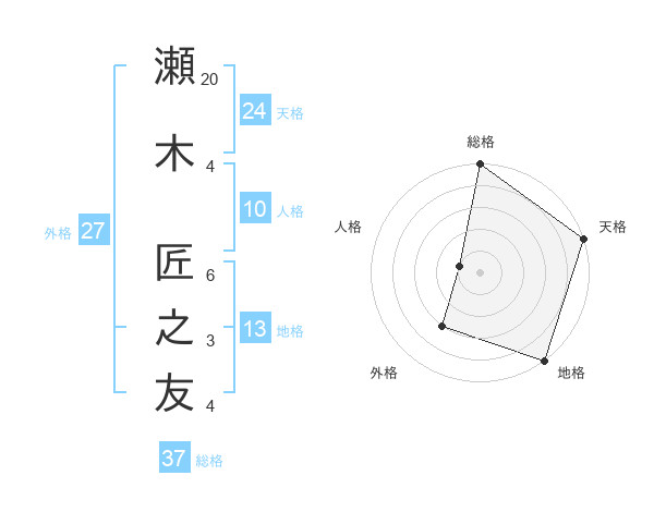 瀬木 匠之友さんを姓名の画数から五運を鑑定