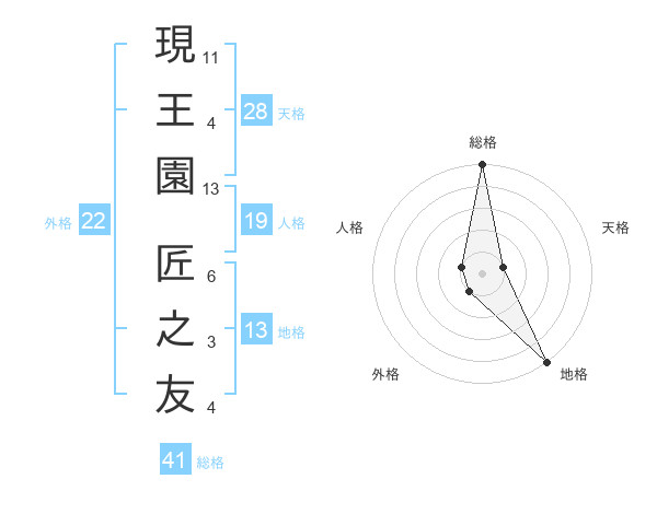 現王園 匠之友さんを姓名の画数から五運を鑑定