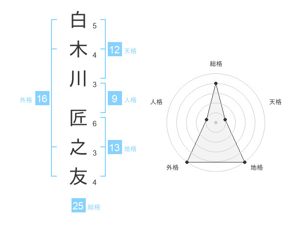 白木川 匠之友さんを姓名の画数から五運を鑑定