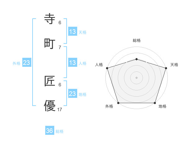 寺町 匠優さんの天格は13画の5点!