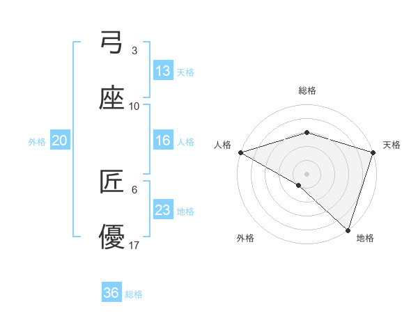 弓座 匠優さんの天格は13画の5点!