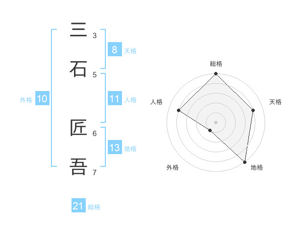 三石 匠吾さんを姓名の画数から五運を鑑定