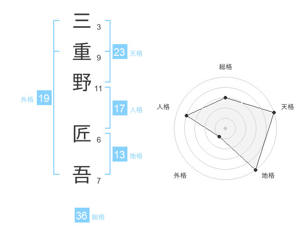 三重野 匠吾さんを姓名の画数から五運を鑑定