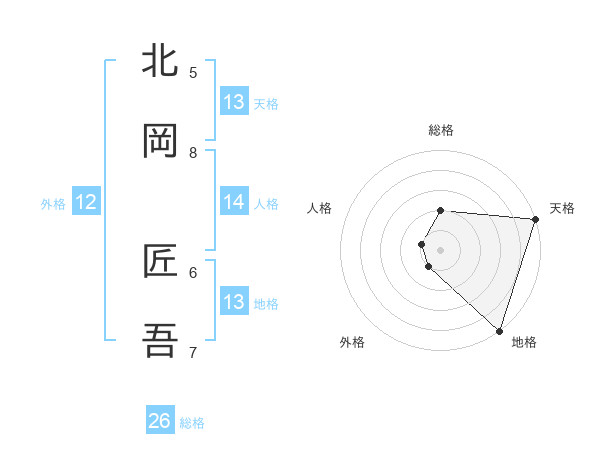 北岡 匠吾さんの天格は13画の5点!