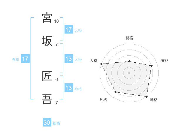 宮坂 匠吾さんを姓名の画数から五運を鑑定