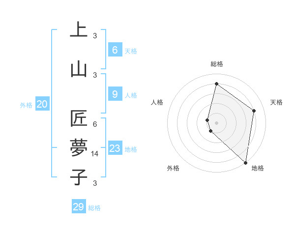 上山 匠夢子さんを姓名の画数から五運を鑑定