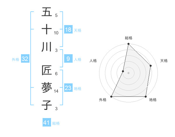 五十川 匠夢子さんを姓名の画数から五運を鑑定
