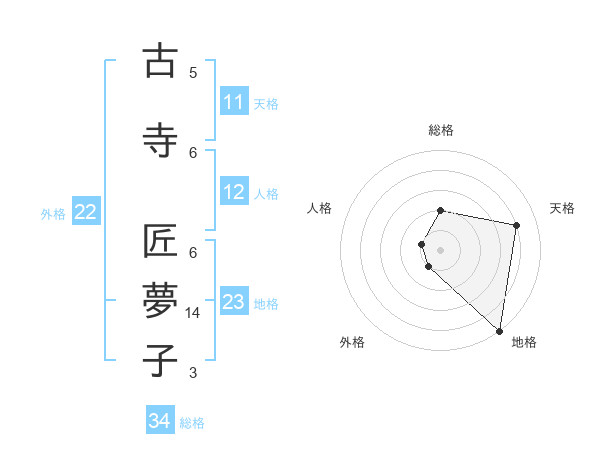 古寺 匠夢子さんの総格は34画の2点!
