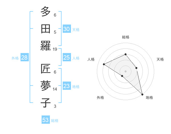 多田羅 匠夢子さんを姓名の画数から五運を鑑定