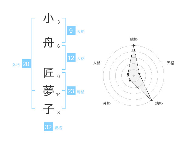 小舟 匠夢子さんの総格は32画の5点!