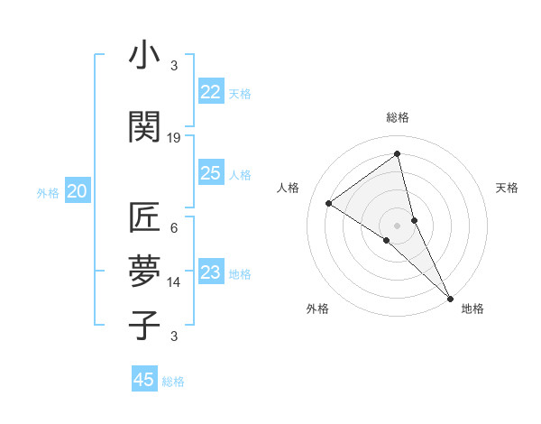 小関 匠夢子さんの総格は45画の4点