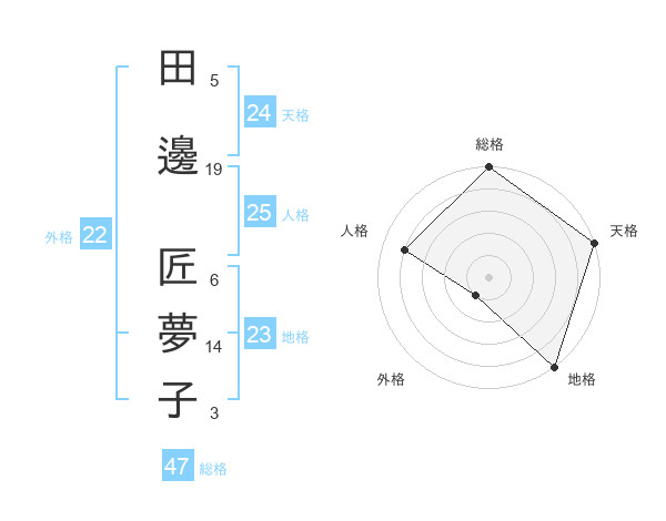 田邊 匠夢子さんの総格は47画の5点!