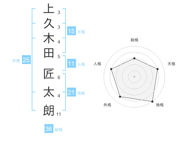 上久木田 匠太朗さんを姓名の画数から五運を鑑定