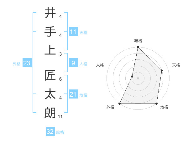 井手上 匠太朗さんを姓名の画数から五運を鑑定