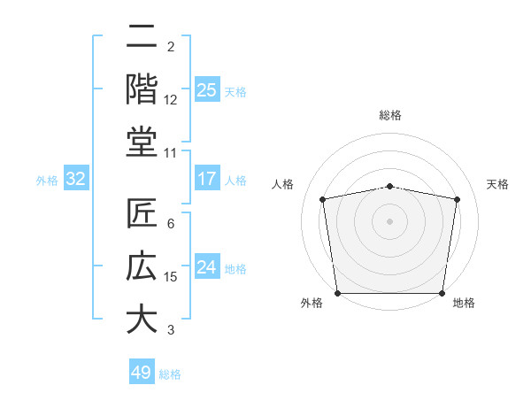 二階堂 匠広大さんを姓名の画数から五運を鑑定
