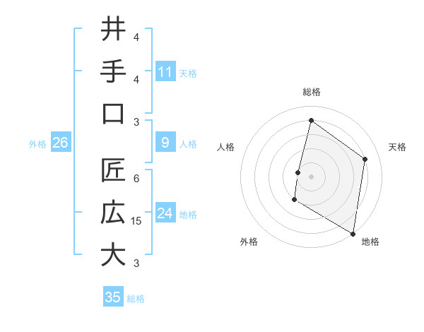 井手口 匠広大さんの総格は35画の4点!