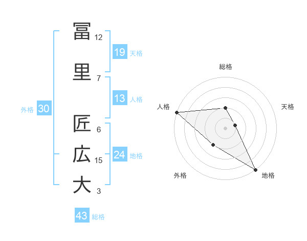 冨里 匠広大さんの総格は43画の2点!