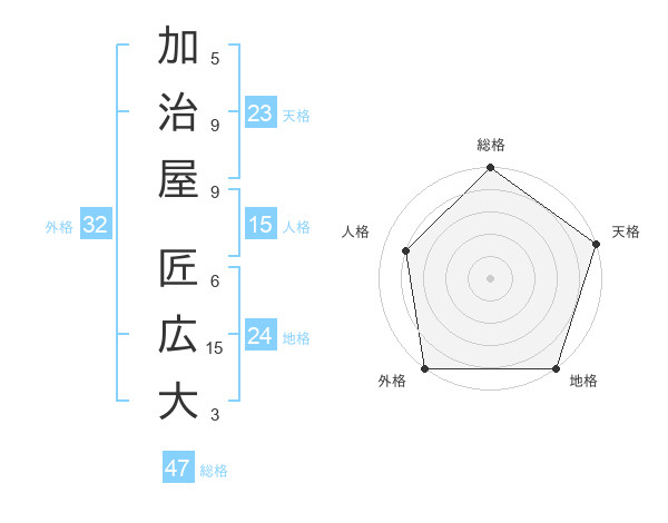 加治屋 匠広大さんを姓名の画数から五運を鑑定