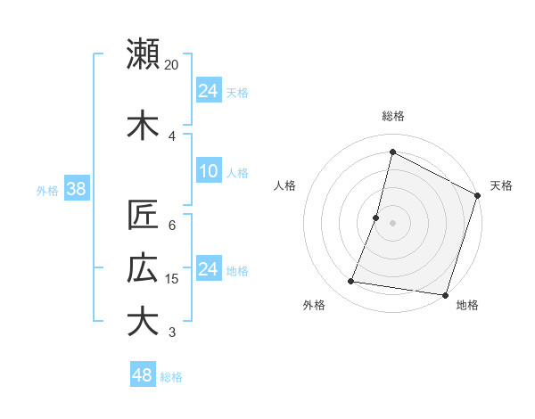 瀬木 匠広大さんを姓名の画数から五運を鑑定