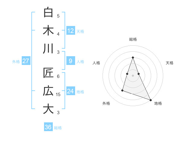 白木川 匠広大さんを姓名の画数から五運を鑑定