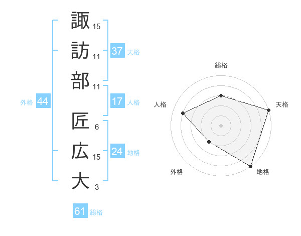 諏訪部 匠広大さんを姓名の画数から五運を鑑定