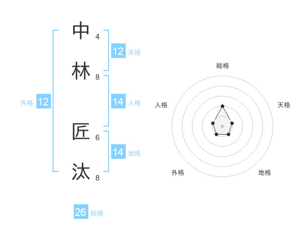 中林 匠汰さんを姓名の画数から五運を鑑定