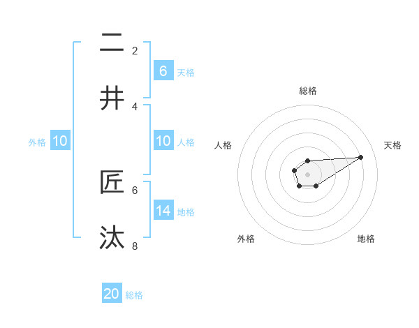 二井 匠汰さんを姓名の画数から五運を鑑定