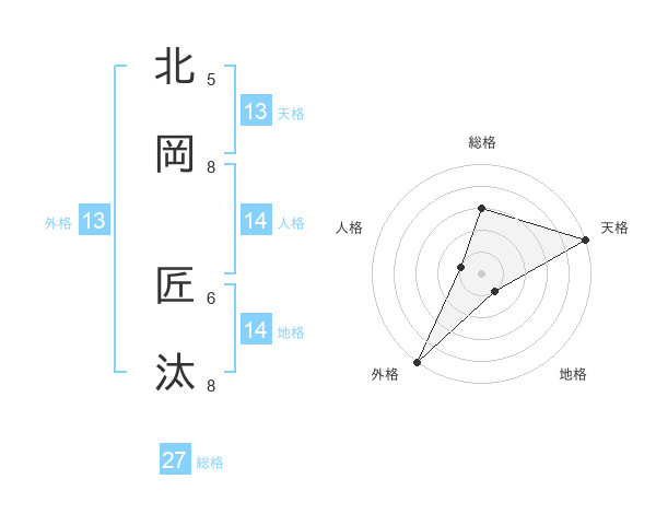 北岡 匠汰さんを姓名の画数から五運を鑑定