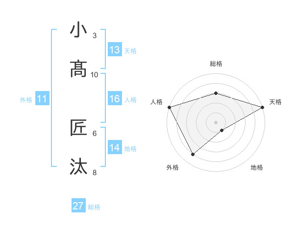 小髙 匠汰さんを姓名の画数から五運を鑑定