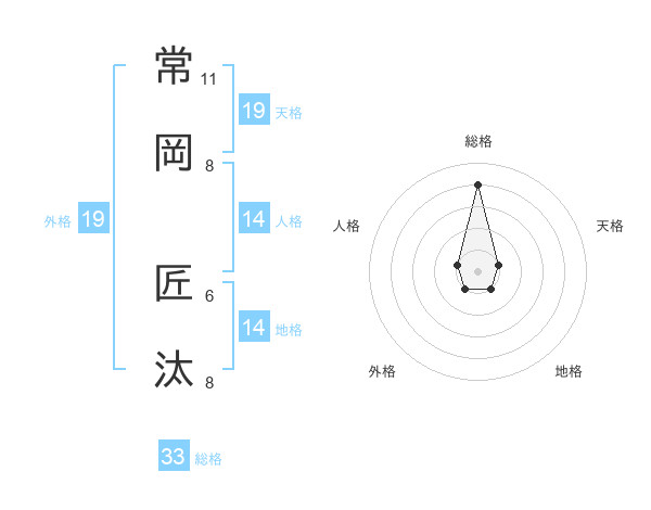 常岡 匠汰さんの総格は33画の4点!