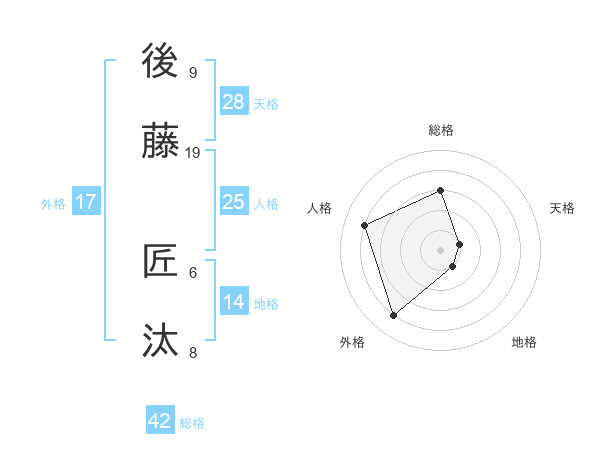 後藤 匠汰さんを姓名の画数から五運を鑑定