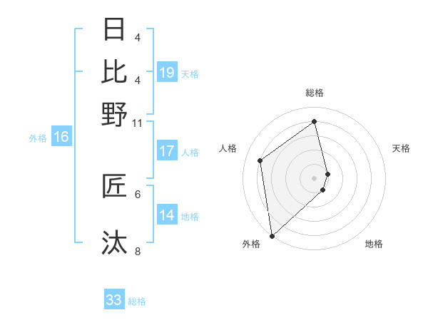 日比野 匠汰さんを姓名の画数から五運を鑑定