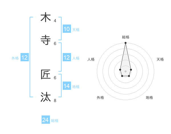 木寺 匠汰さんを姓名の画数から五運を鑑定