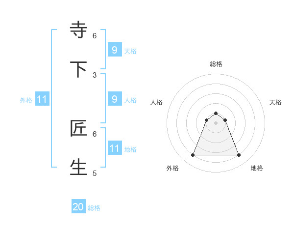 寺下 匠生さんの総格は20画の1点!