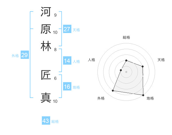 河原林 匠真さんを姓名の画数から五運を鑑定