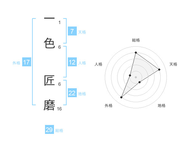 一色 匠磨さんの総格は29画の4点!