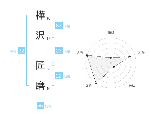 樺沢 匠磨さんの天格は33画の4点