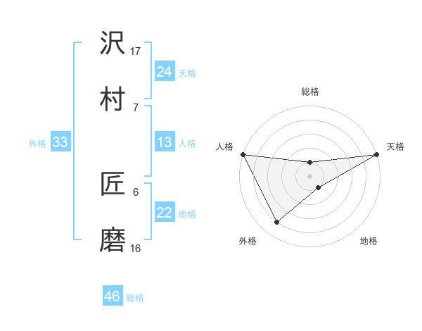 沢村 匠磨さんを姓名の画数から五運を鑑定