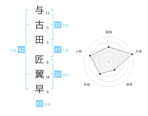 与古田 匠翼早さんの総格は53画の3点