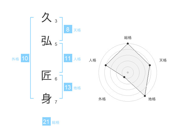 久弘 匠身さんを姓名の画数から五運を鑑定