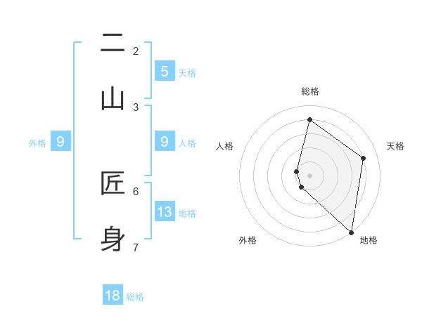 二山 匠身さんの総格は18画の4点!