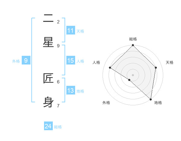 二星 匠身さんの総格は24画の5点!